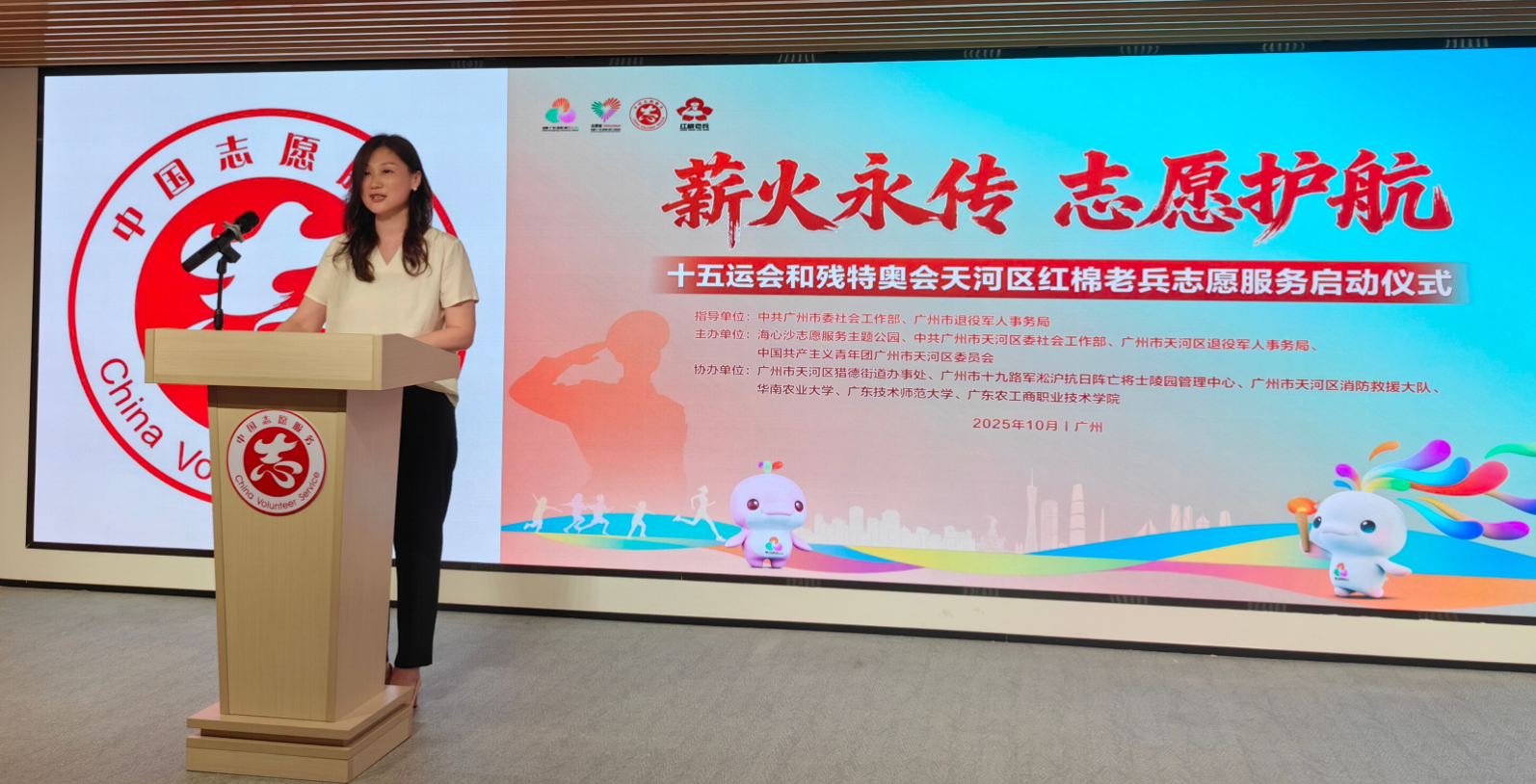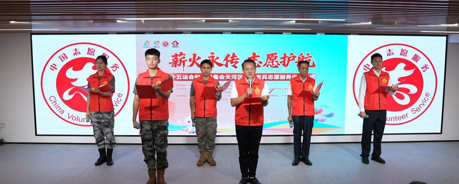 活动在广州市委社会工作部、广州市退役军人事务局指导下,由天河区委社会工作部、天河区退役军人事务局、共青团天河区委员会联合主办,最美红棉老兵、高校退役大学生、新彩广州十五运会和残特奥会红棉老兵志愿服务队代表等近百人参加。