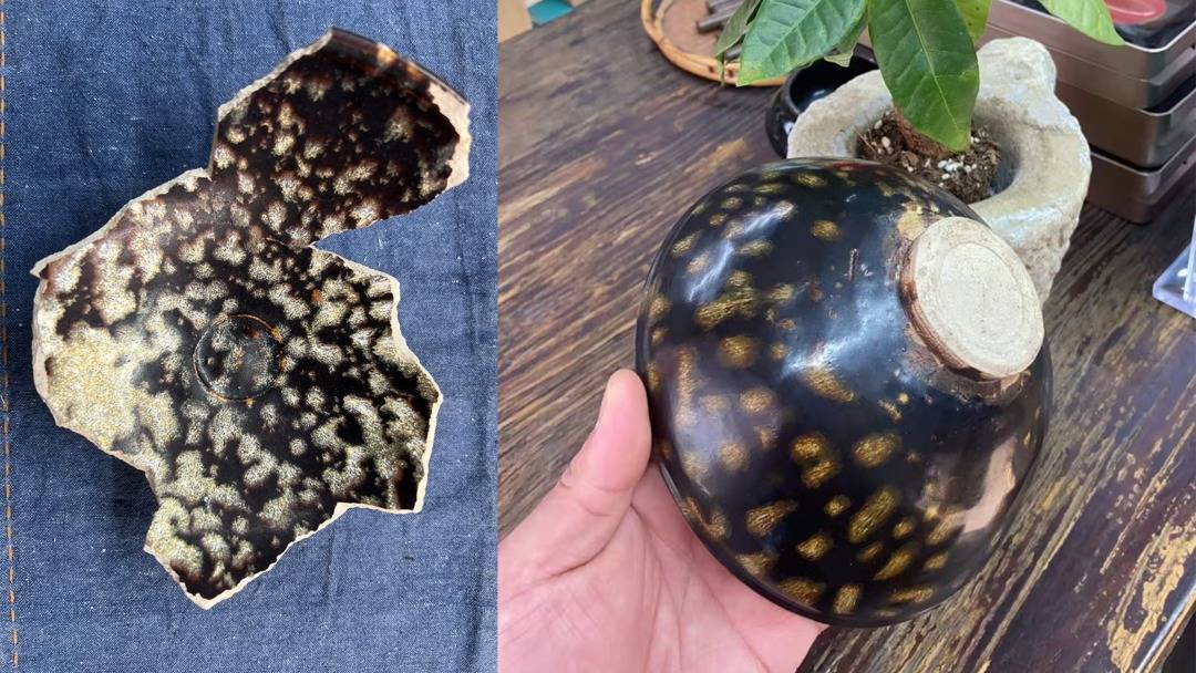 李晓东无痕修复的一件宋代吉州窑瓷器,左为修复前,右为修复后,受访人供图。