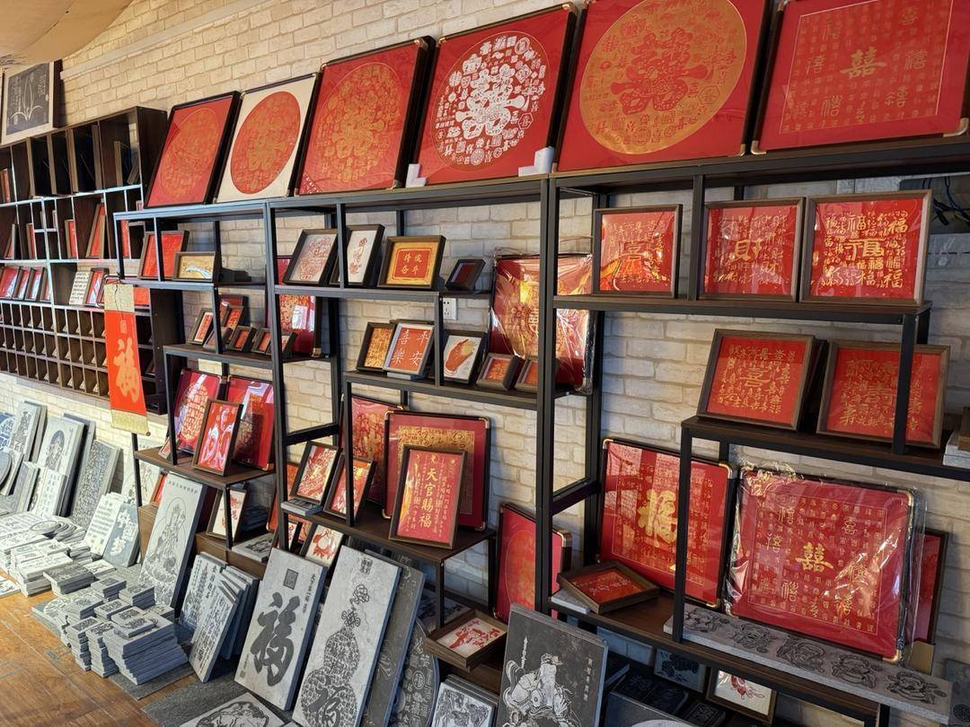 而市场内的英雄山1992文化产业园,展示着拓懿张的拓印作品,也为拓印活动提供了宽敞舒适的场地。济南英雄山文化市场管理集团有限公司副总经理王少嵩告诉记者,产业园内还陈列着其他业户的许多非遗作品,这也为市场内的手艺人提供了一个更好的展销平台。