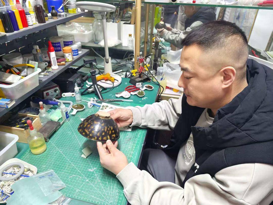 李晓东是省级非遗项目——古陶瓷修复技艺代表性传承人王春发先生的入室弟子,也是整个英雄山文化市场唯一从事古瓷修复的手艺人。截至今年,他用一双巧手让数百件古瓷迎来新生。